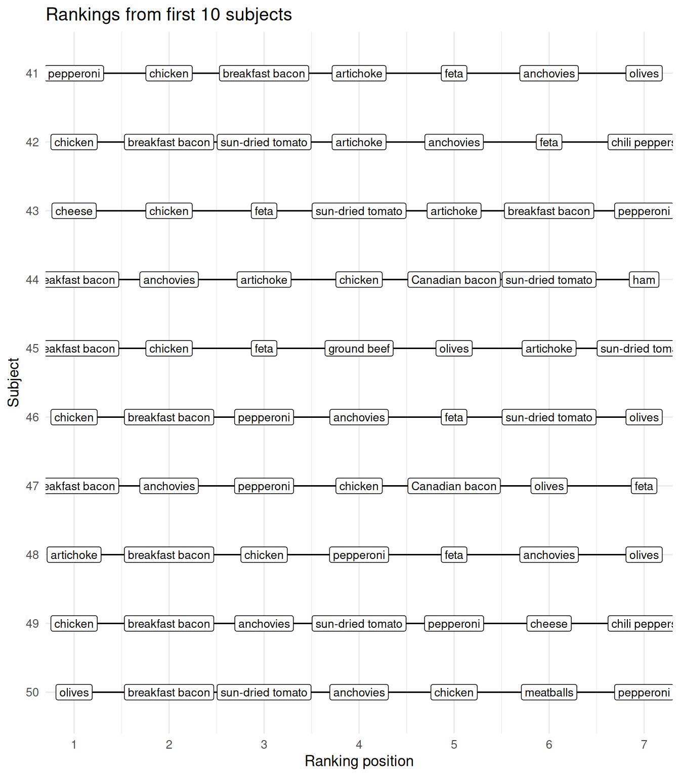 A ranking simulation using pizza toppings